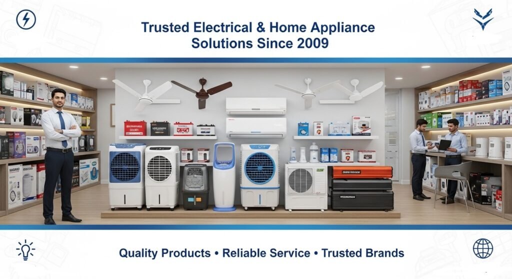 We provide branded batteries, inverters, air conditioners, geysers, heaters, and electrical products designed for daily comfort, reliable performance, and long-term customer satisfaction.